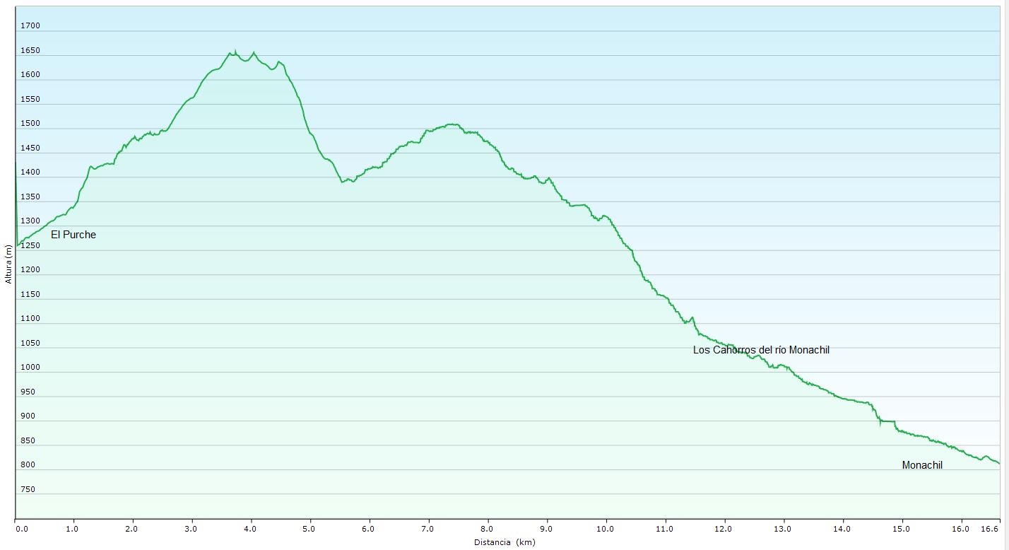 Desnivel: 645 m (+) 1.264 (-)