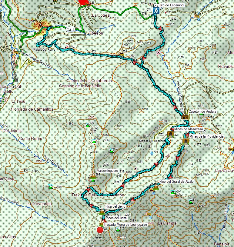Desnivel: 1.395 m (+) 1.681 m (-)
